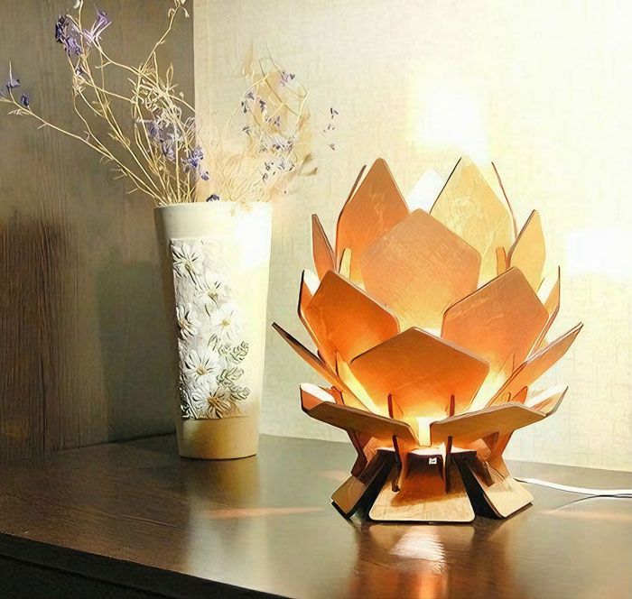 1. Đèn Ngủ Bằng Gỗ Hình Hoa Sen – Điểm Nhấn Sáng Tạo Và Ấm Cúng Cho Không Gian Sống