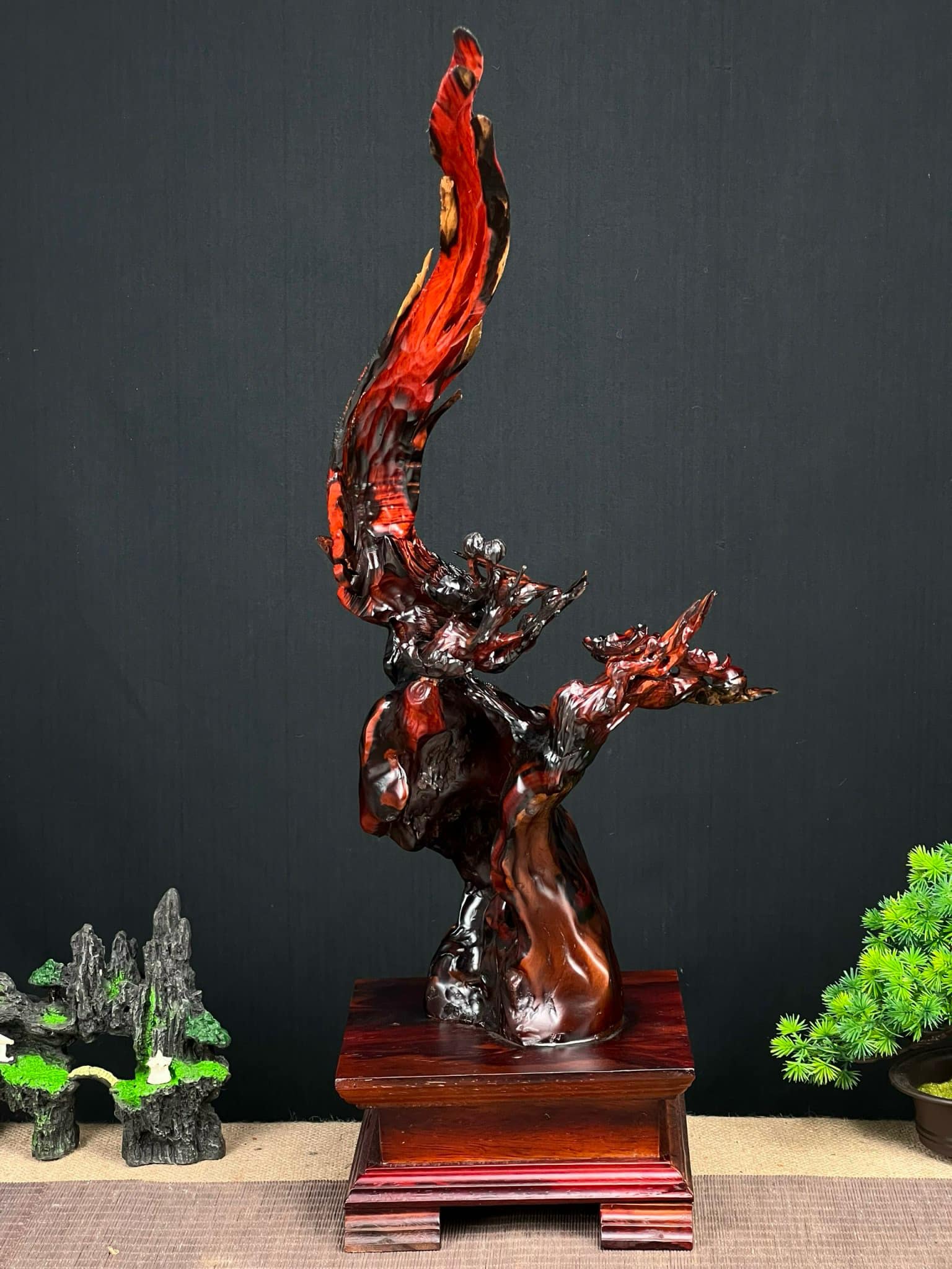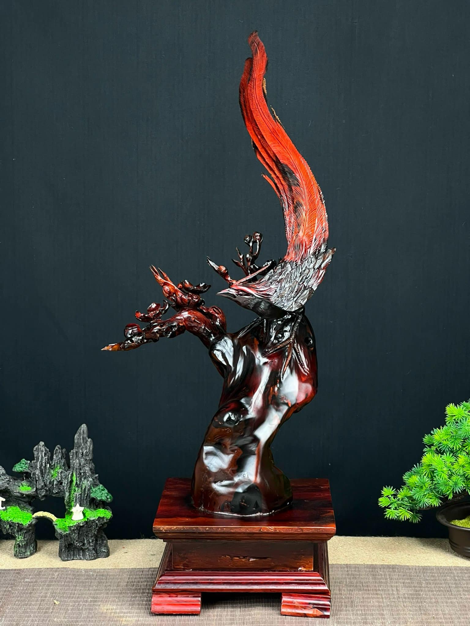 Thông tin tác phẩm Tượng Gỗ Chim Trĩ Khắc Thủ Công Từ Gỗ Trắc Đỏ Đen