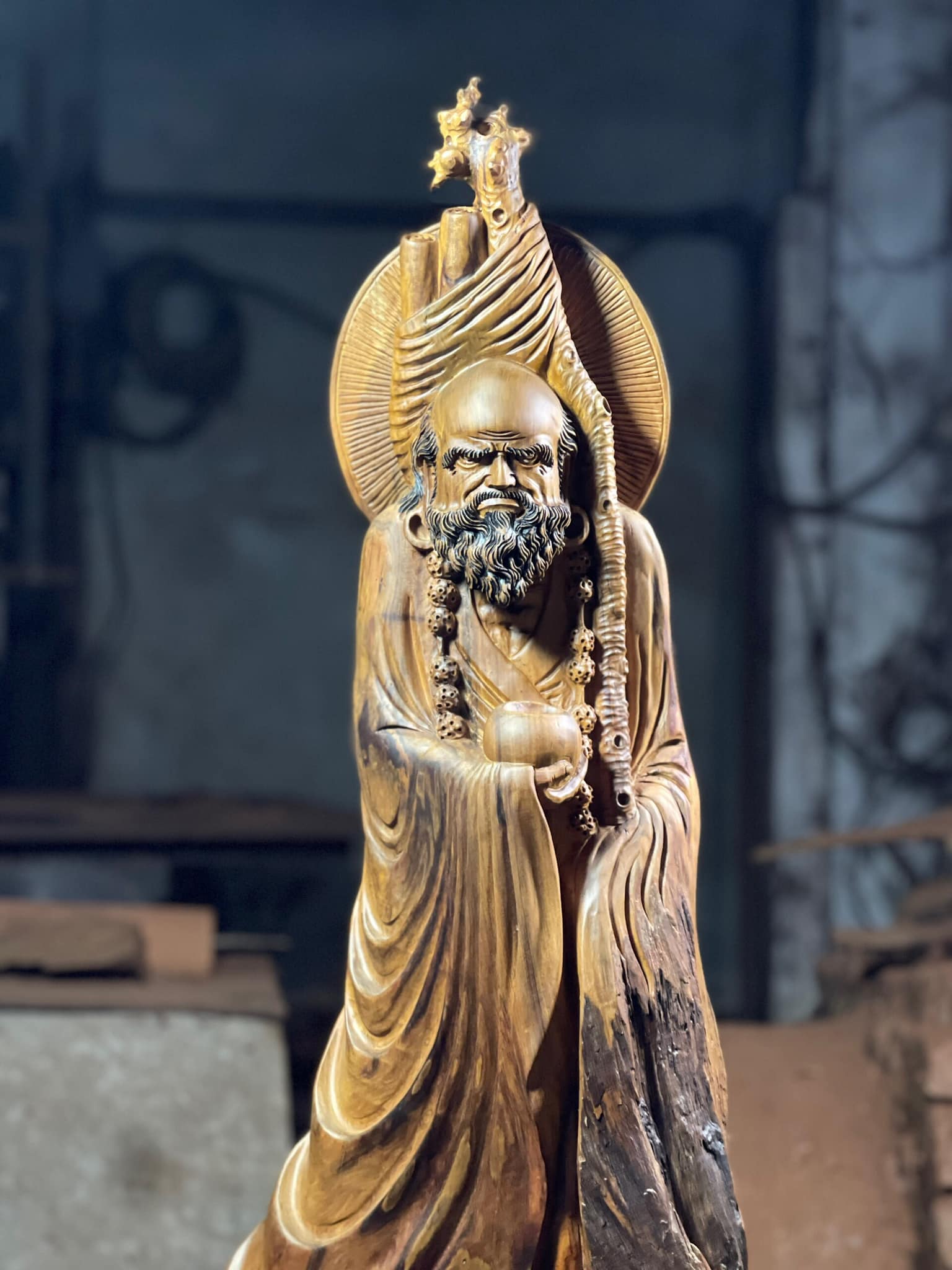 Thông tin tác phẩm Tượng Gỗ Đạt Ma Điêu Khắc Thủ Công Từ Gỗ Bác Xanh Mộc Châu
