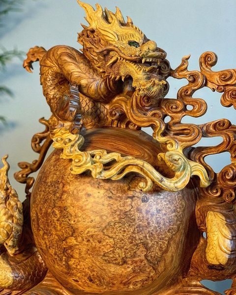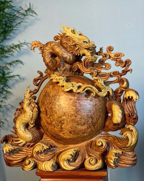 Thông tin tác phẩm Tượng Gỗ Nhất Long Bảo Châu Điêu Khắc Thủ Công Từ Gỗ Nu Hương